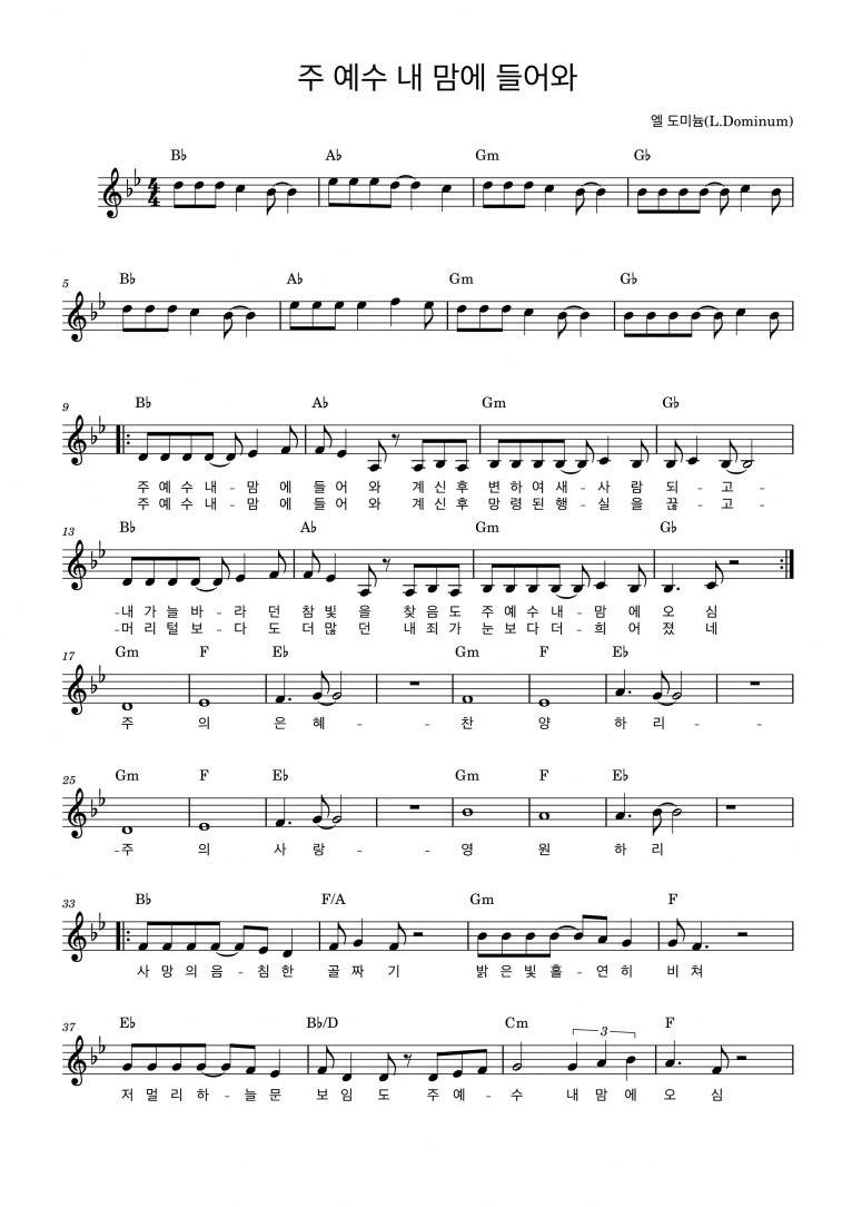 뮤직타임 [악보] 주 예수 내 맘에 들어와 - L. Dominum (LoudateDominum 라우데테 도미늄: 하나님을 찬양하라)