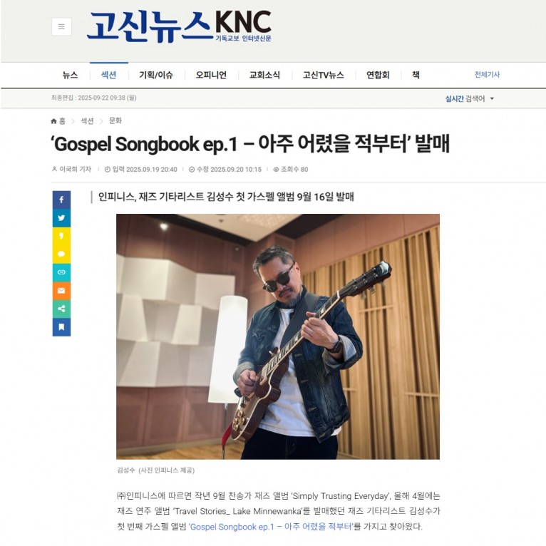 [기사] 재즈 기타리스트 김성수, ‘Gospel Songbook ep.1 – 아주 어렸을 적부터’ 발매(고신뉴스 KNC)